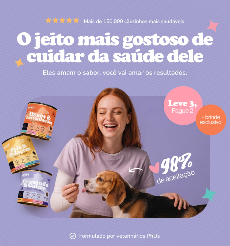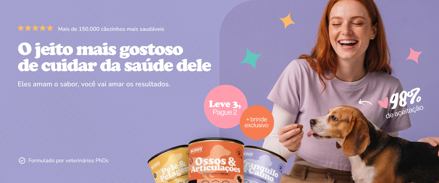 Cuide melhor do seu cãozinho com dicas de saúde, novidades e ofertas exclusivas da Buddy.