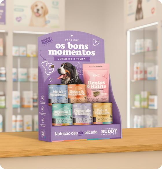 A Buddy Nutrition é a marca que eles já conhecem. Já estamos nas maiores redes do país, nos consultórios dos melhores veterinários, e agora queremos estar no seu balcão também.
