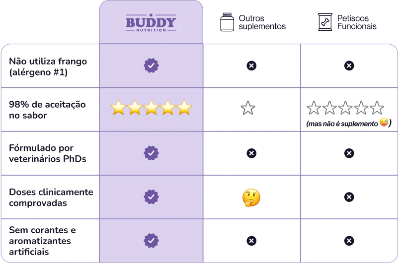 dos clientes recomendariam os suplementos Buddy para outros tutores que amam seus cães*