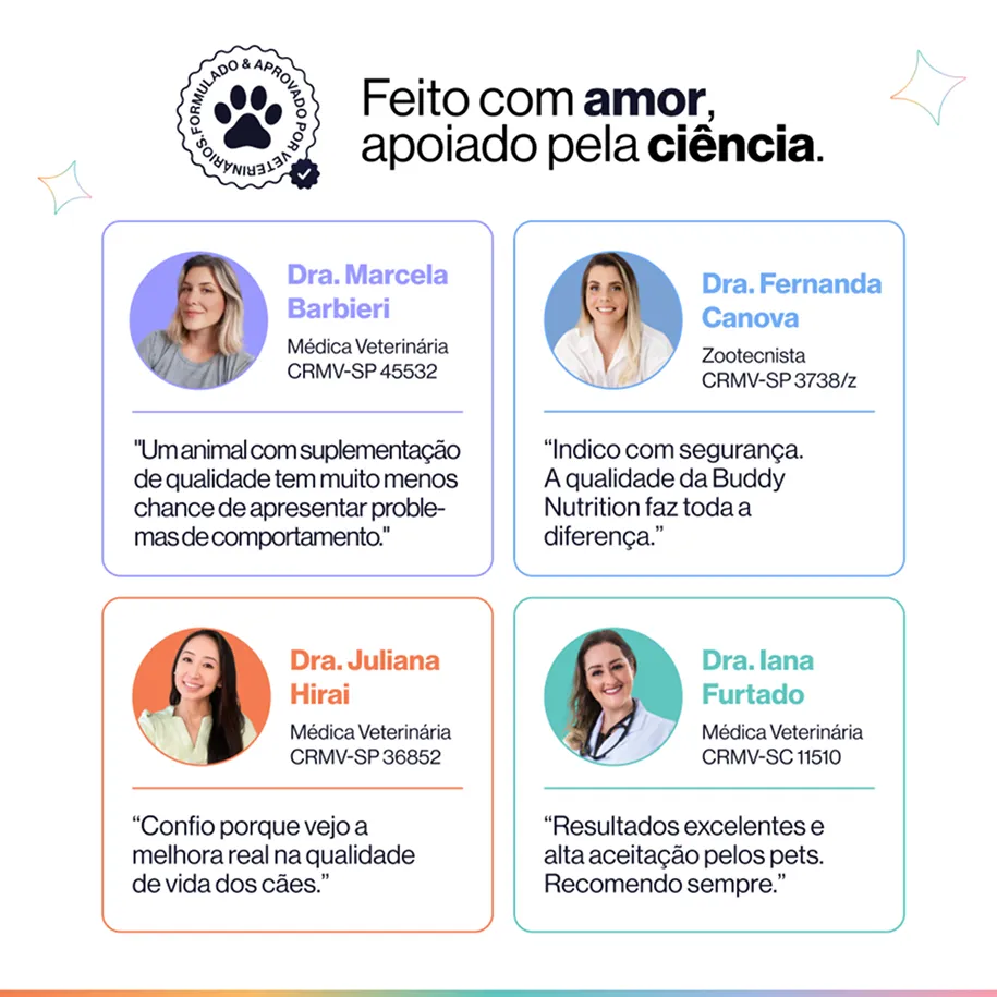 *Dados obtidos em pesquisa interna realizada em 2025 com tutores que utilizam os suplementos Buddy Nutrition como parte do cuidado diário.