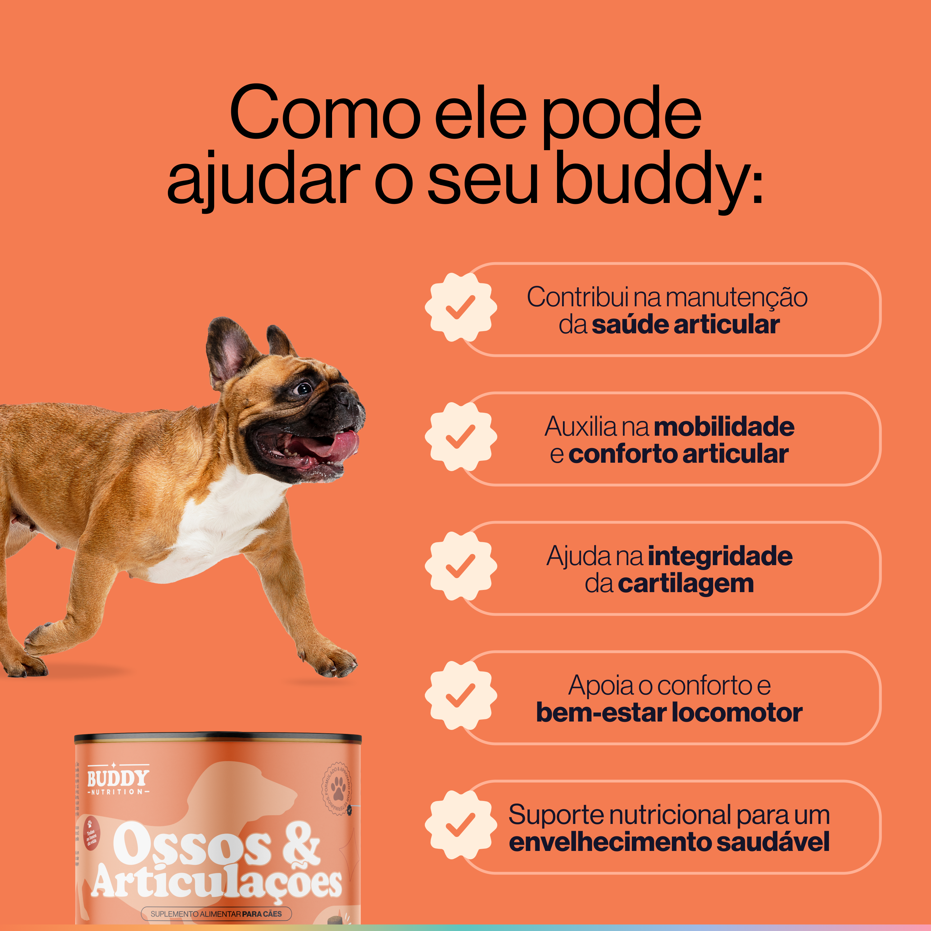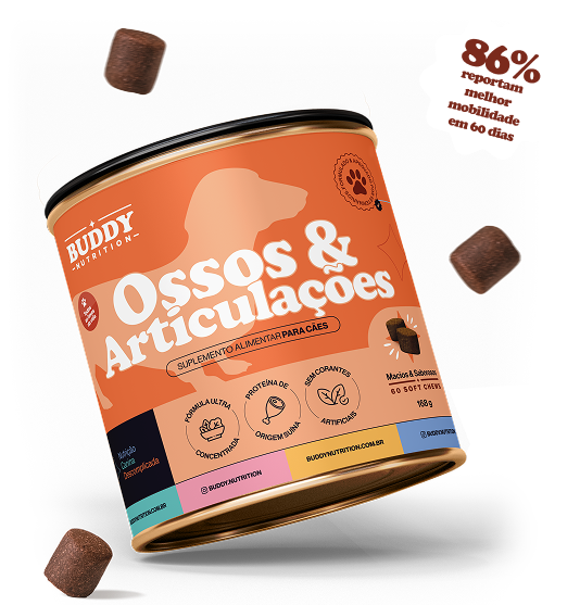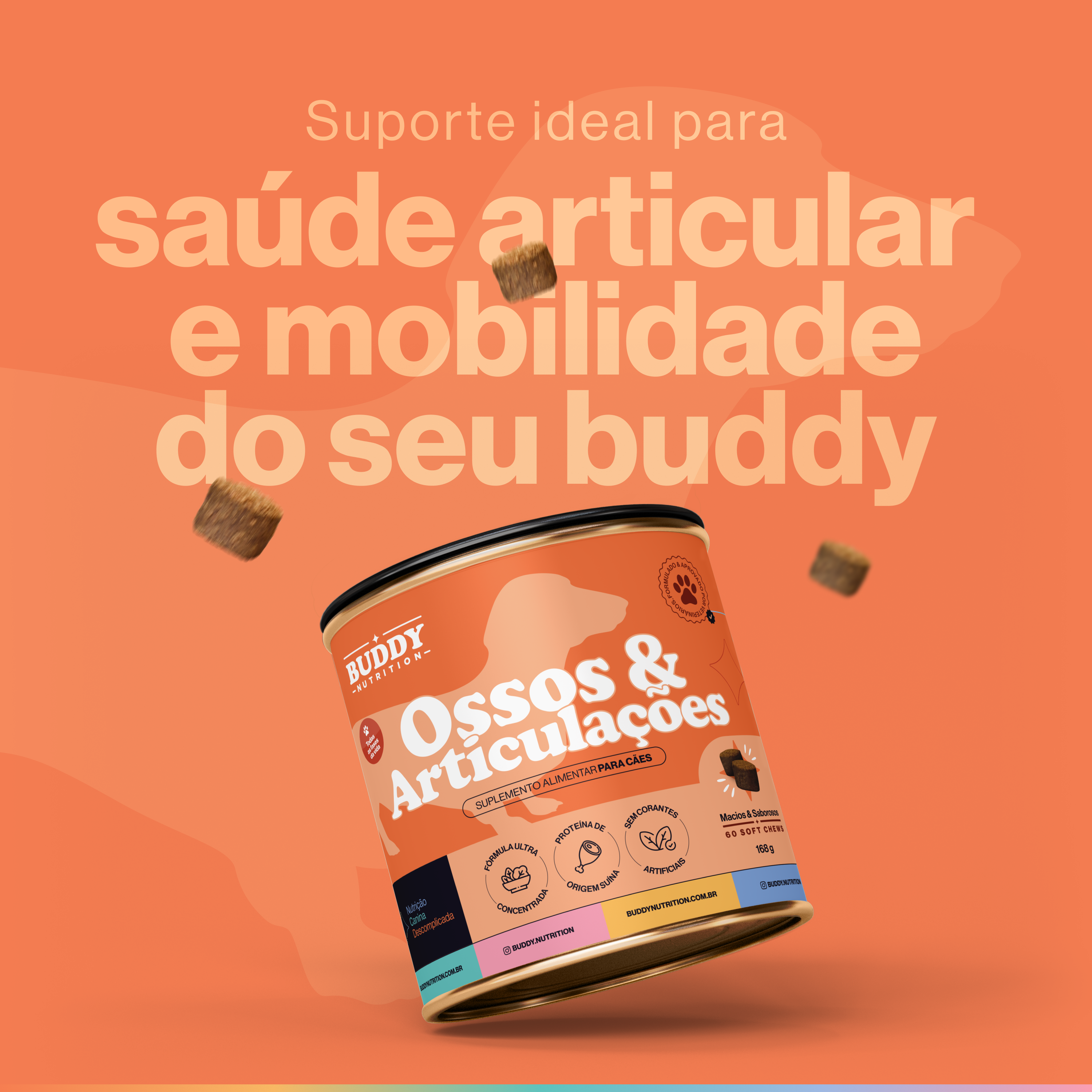 Cãezinhos que mancam são os mais óbvios, mas se o seu Buddy hesita antes de pular, evita escadas ou subir na cama ou sofá, ou parou de te receber na porta com aquela explosão de alegria, sem vontade de brincar com a bolinha ou passear - Ossos & Articulações foi pensado para apoiar a nutrição articular dele.