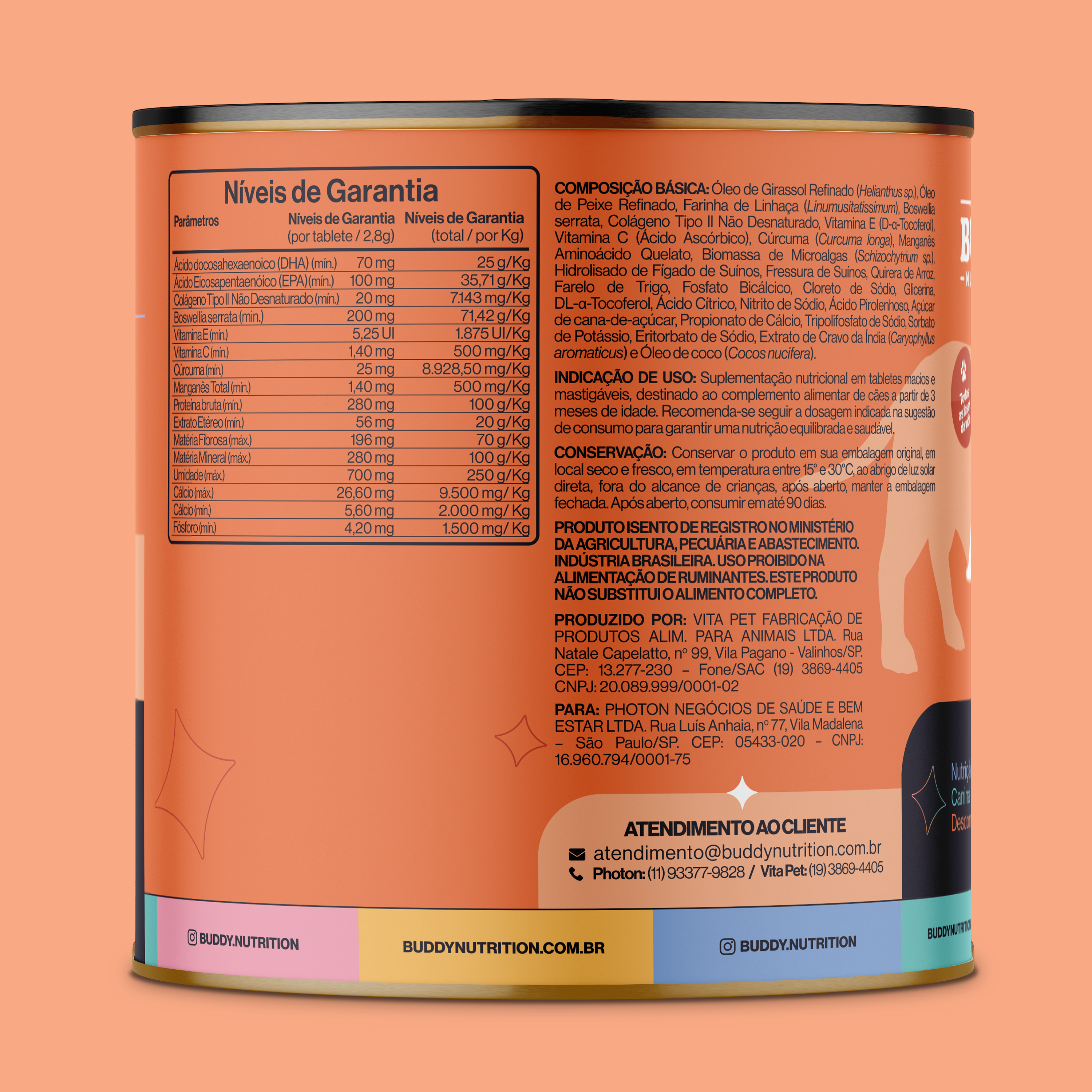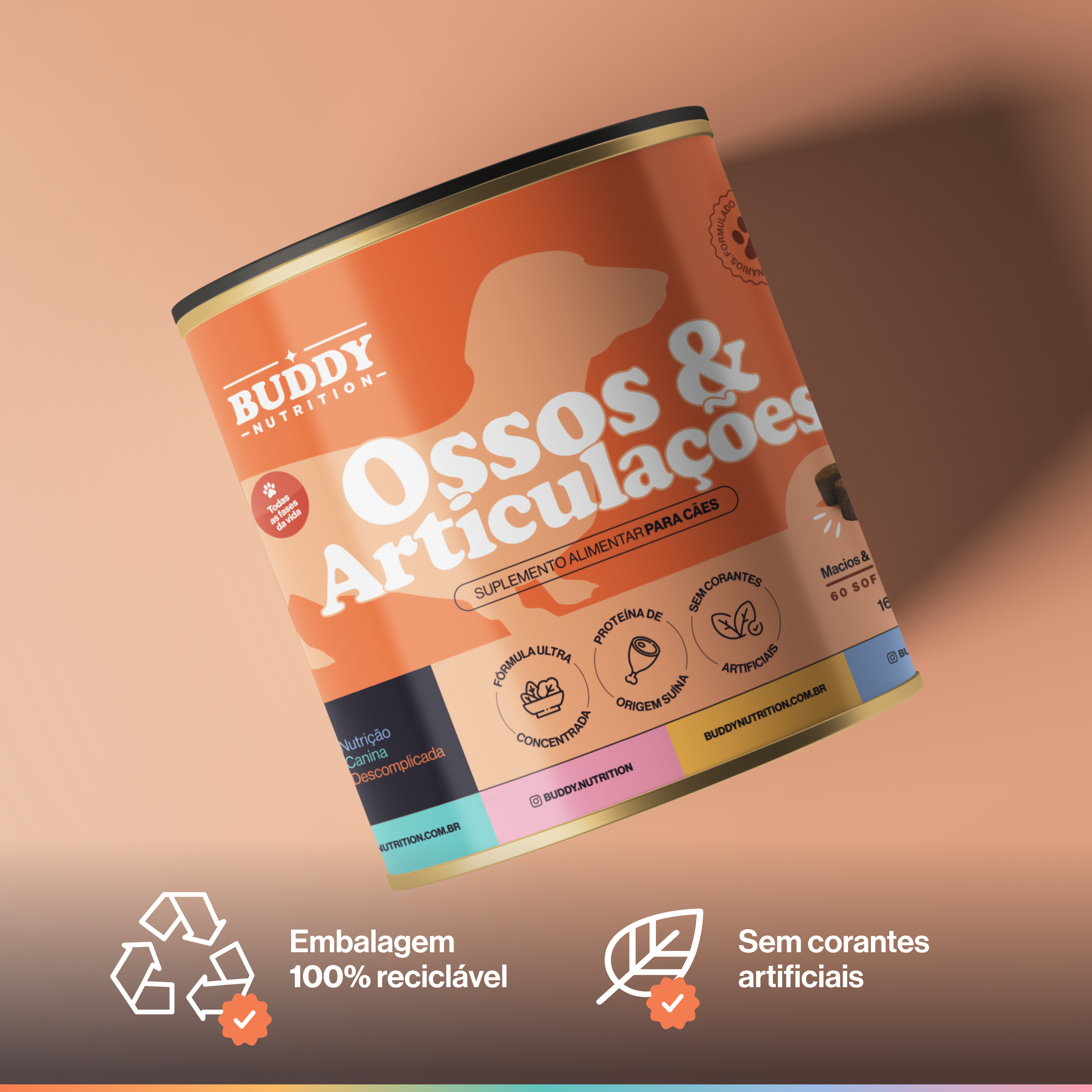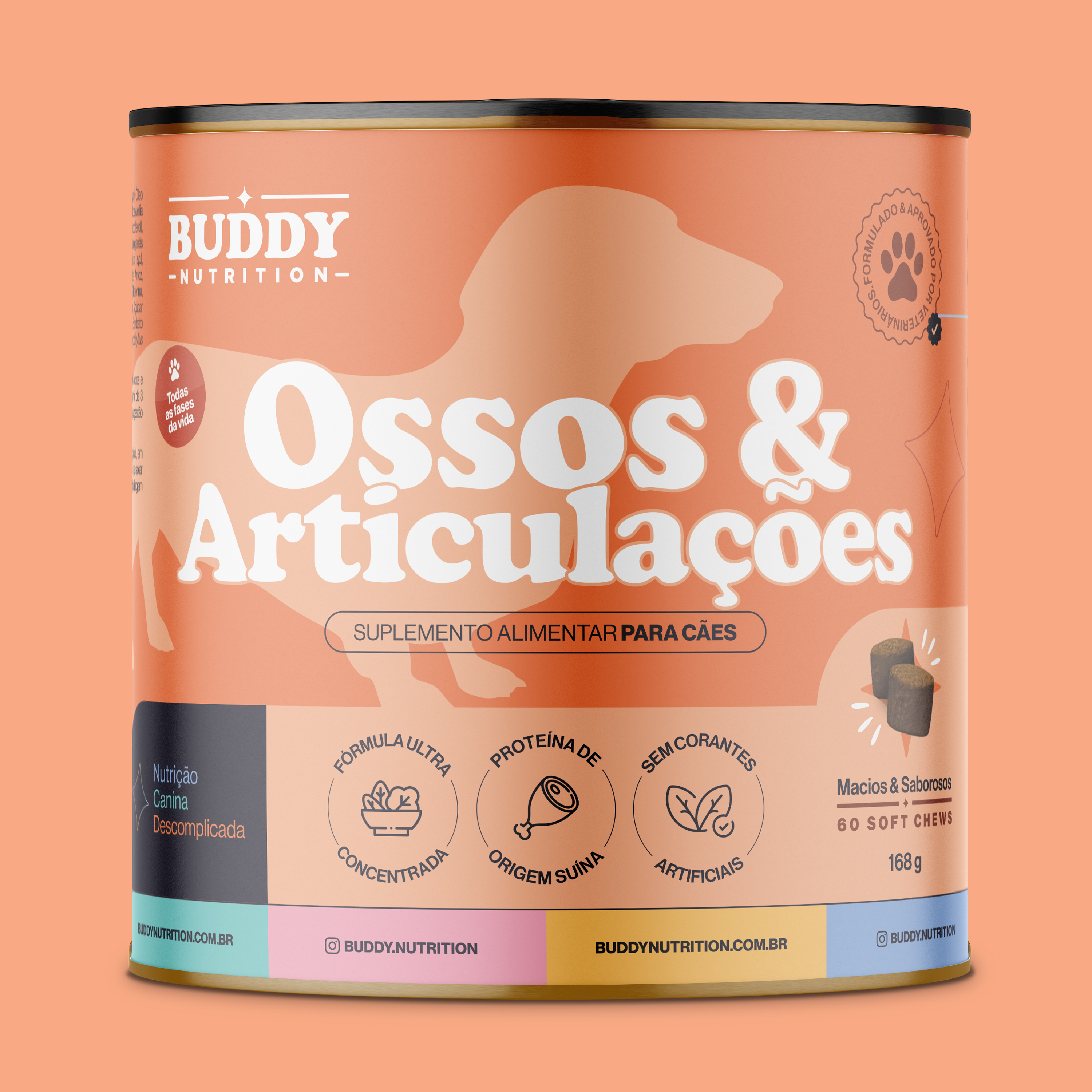 Cãezinhos que mancam são os mais óbvios, mas se o seu Buddy hesita antes de pular, evita escadas ou subir na cama ou sofá, ou parou de te receber na porta com aquela explosão de alegria, sem vontade de brincar com a bolinha ou passear - Ossos & Articulações foi pensado para apoiar a nutrição articular dele.