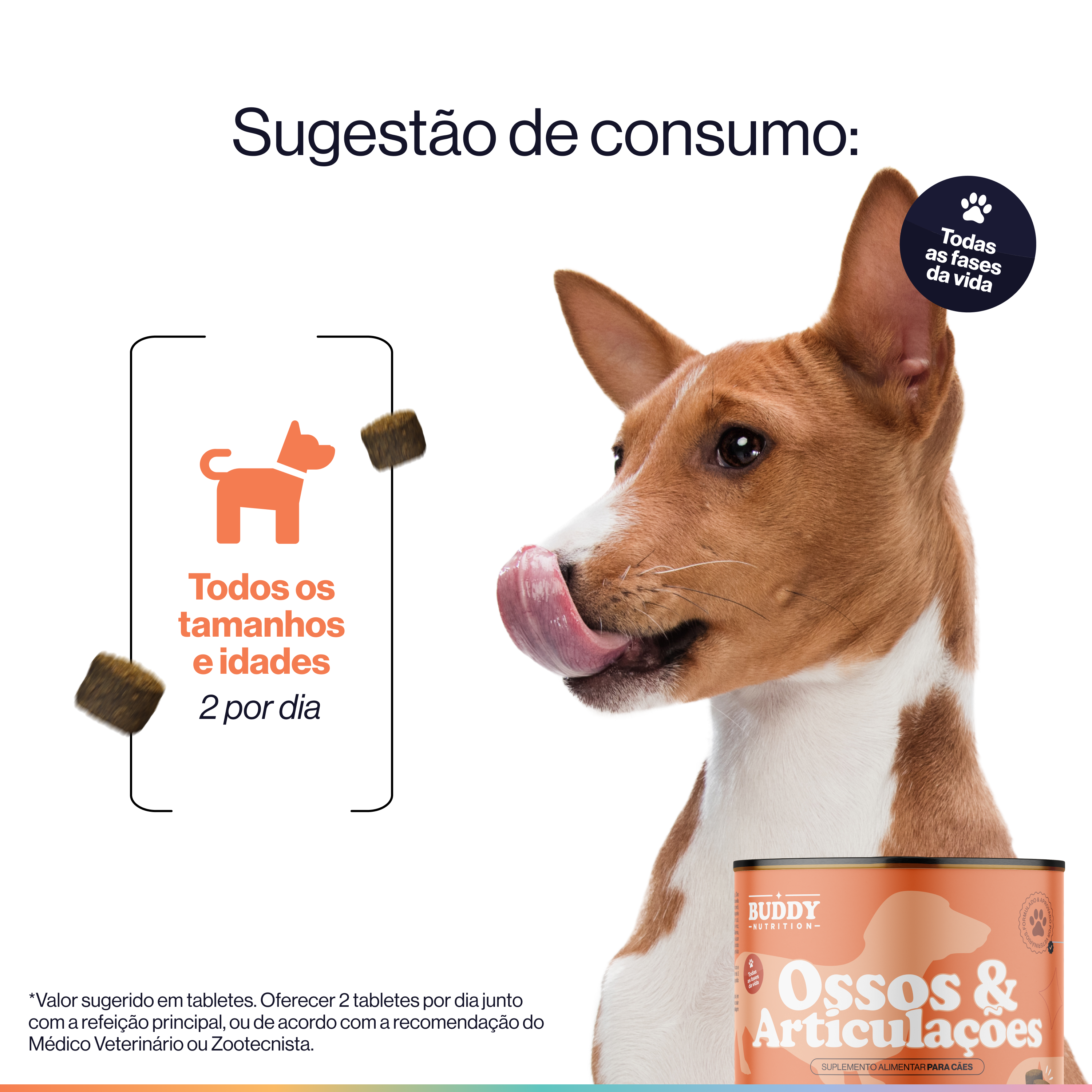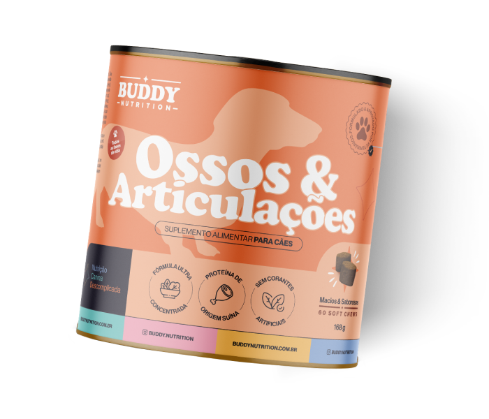 O suplemento Ossos & Articulações foi feito para ajudar na saúde das articulações do seu cão. No entanto, como cada animal é único, o uso contínuo do suplemento deve ser acompanhado. Recomendamos que você fale com o veterinário do seu buddy antes de usar o suplemento por muito tempo, para garantir que ele seja adequado e seguro para o seu cão. O acompanhamento do veterinário é importante para saber a melhor forma de dar o suplemento ao seu amigão.