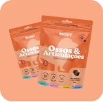 Ossos & Articulações foi construído ao redor do CT-II, mas com um sistema completo: Boswellia e Cúrcuma com propriedades reconhecidas na saúde articular, Ômega-3 para suporte à função articular, antioxidantes naturais e nutrição estrutural. Ingredientes em sinergia - cada um com papel específico. E desenvolvemos um soft chew com sabor que atingiu 98% de aceitação entre os cães. Tutores relatam que seus cães pedem o suplemento. É a única solução que você não precisa esconder na comida.