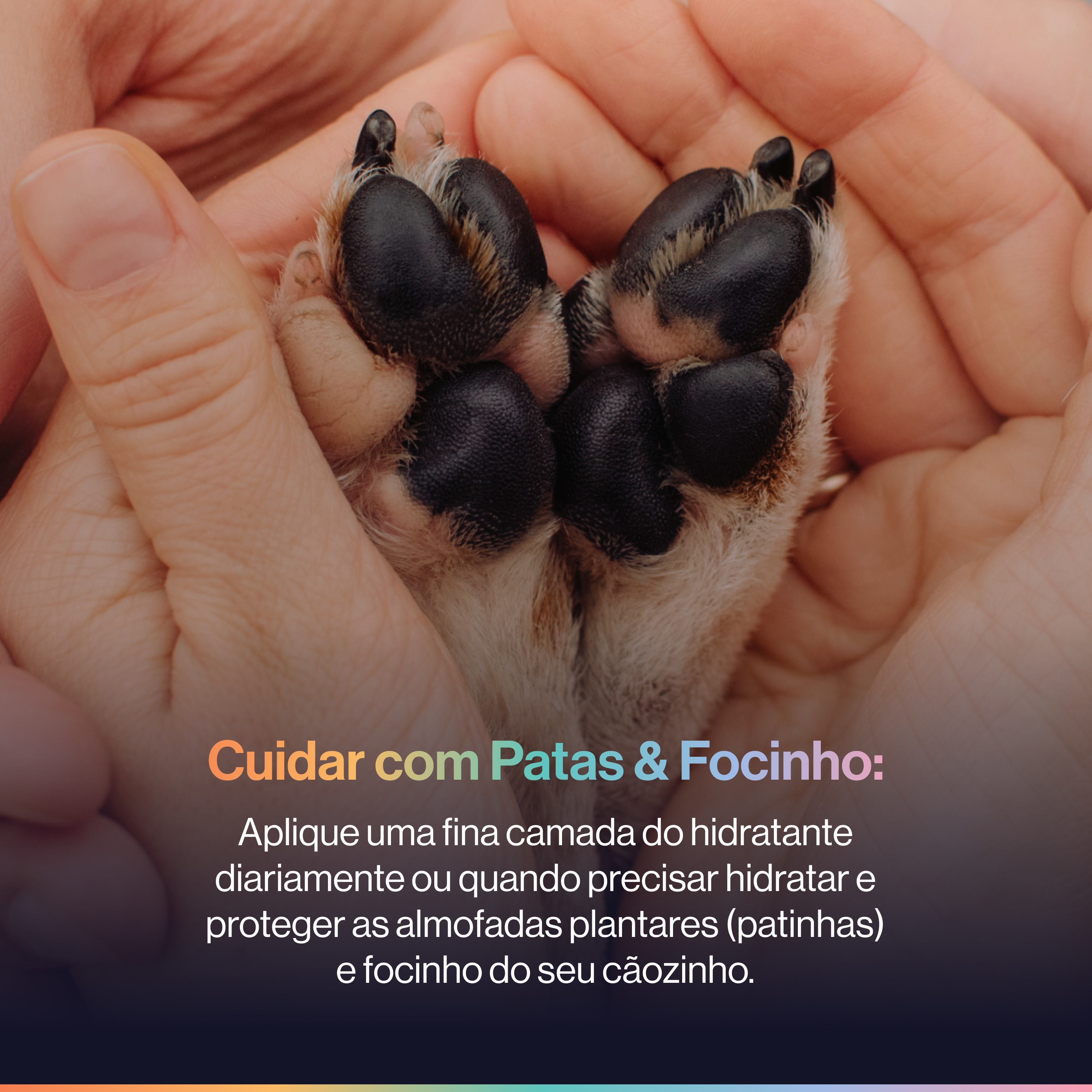 O uso diário mantém as patinhas e o focinho do seu cão hidratados e protegidos, ajudando na cicatrização de rachaduras, evitando ressecamento e promovendo uma pele saudável e confortável.