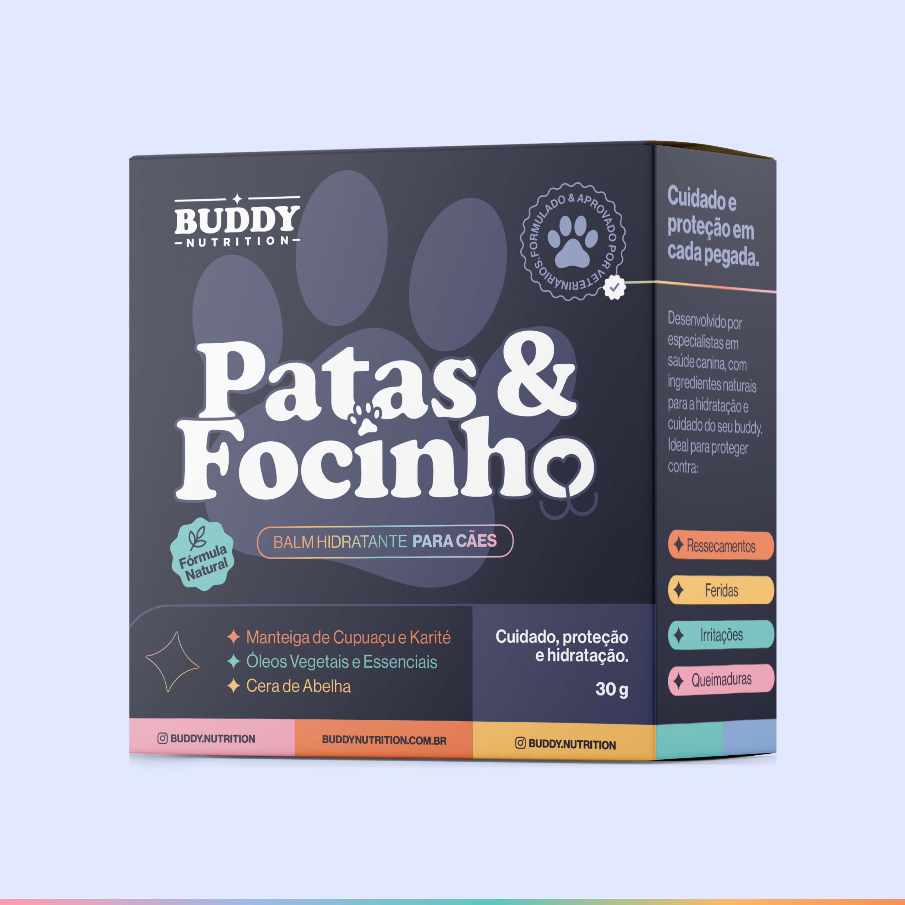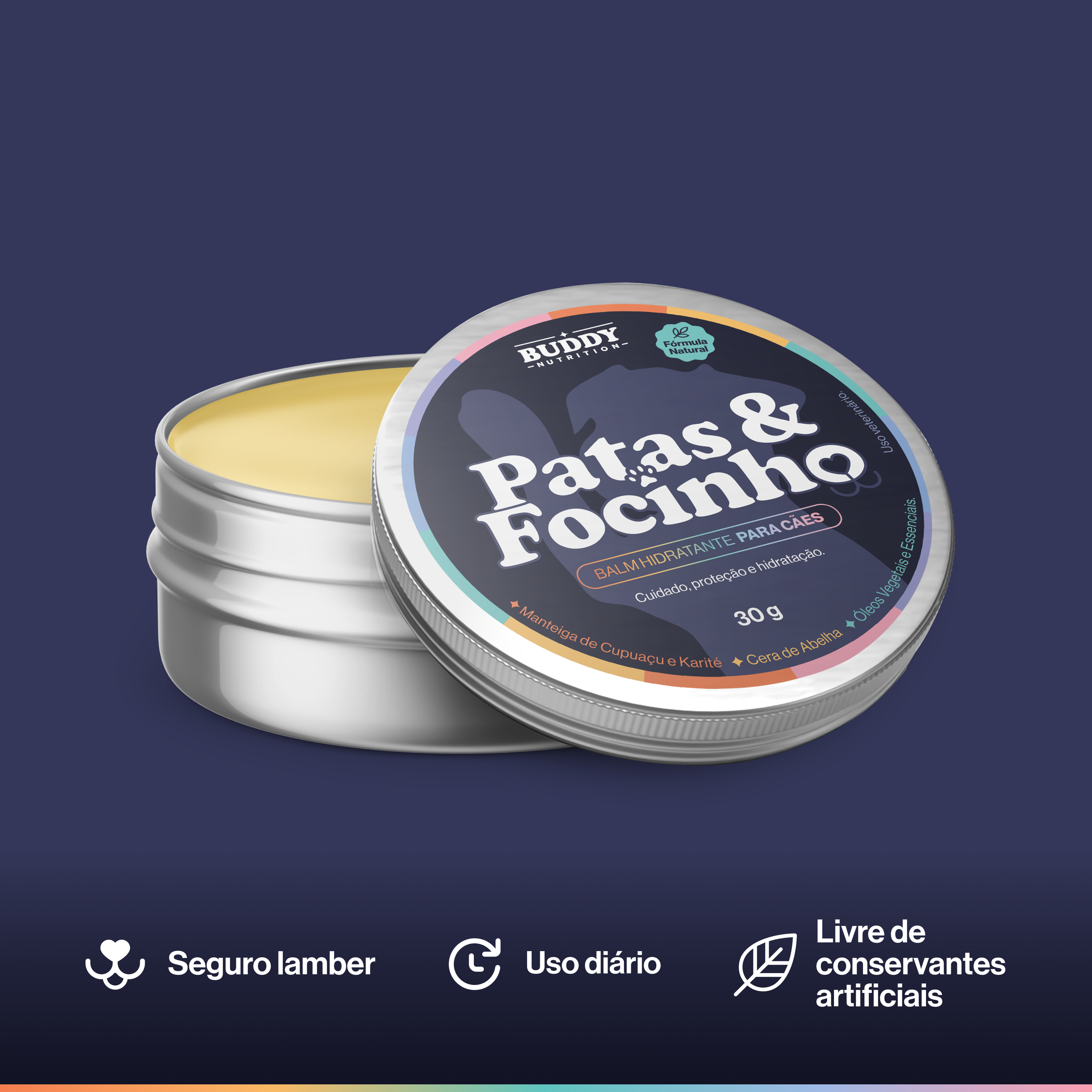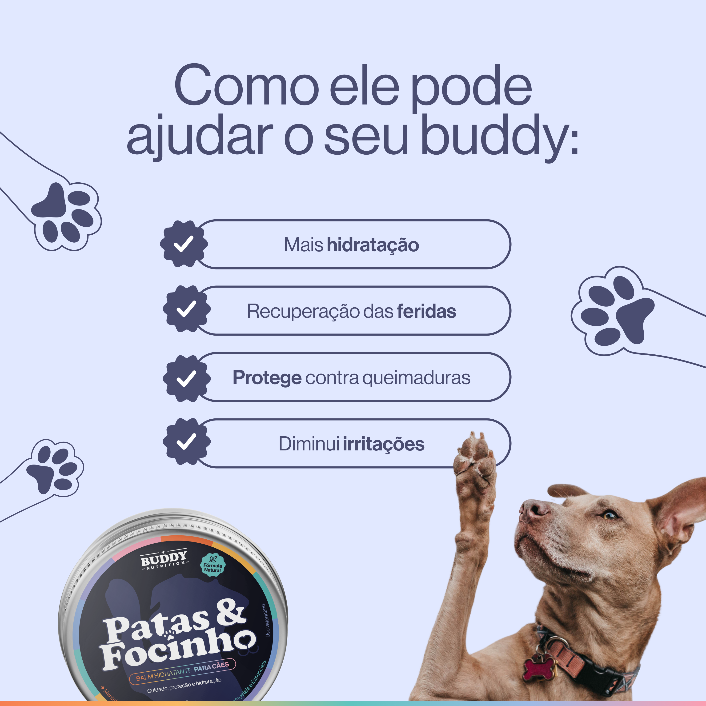 O balm hidratante Patas & Focinho da Buddy Nutrition foi desenvolvido por especialistas em saúde canina para proteger e hidratar as áreas mais expostas do seu cãozinho: as patinhas e o focinho.