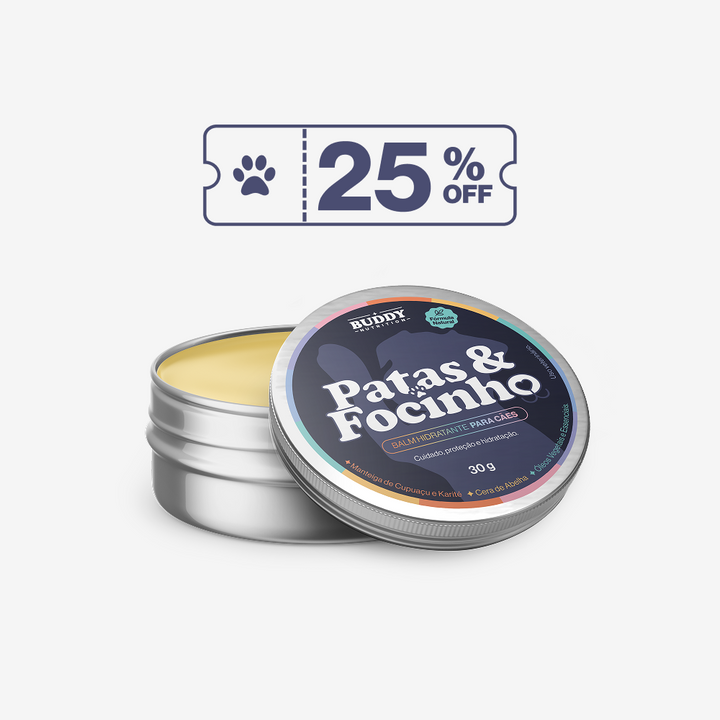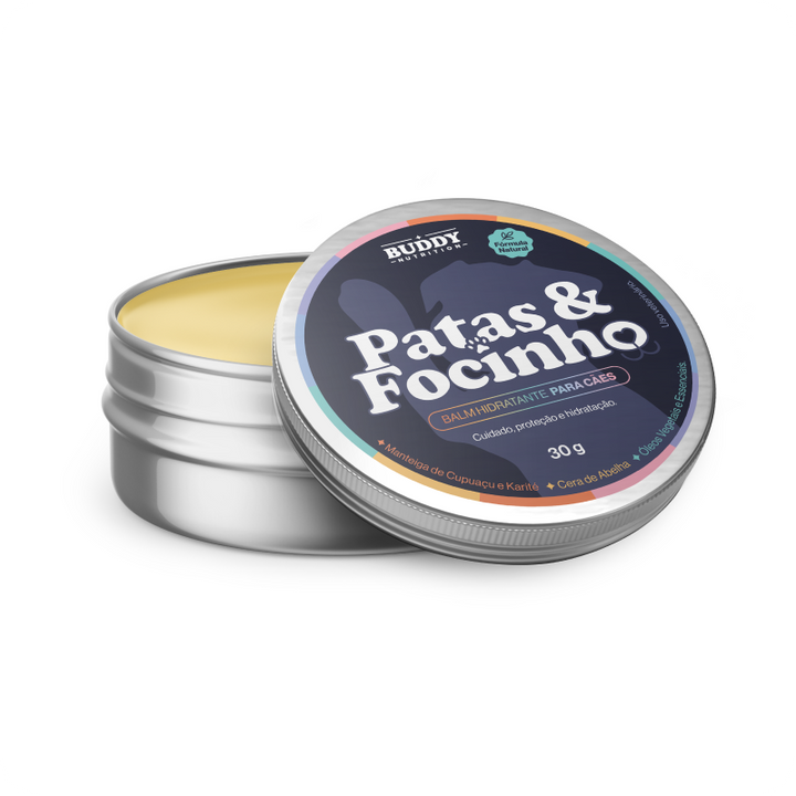 O balm hidratante Patas & Focinho da Buddy Nutrition foi desenvolvido por especialistas em saúde canina para proteger e hidratar as áreas mais expostas do seu cãozinho: as patinhas e o focinho. Com uma fórmula rica em ingredientes naturais, como Manteiga de Cupuaçu, Cera de Abelha, Manteiga de Karité e Óleos Essenciais, o Patas & Focinho oferece hidratação intensa, cicatrização rápida e proteção contra o ressecamento. Ideal para prevenir irritações, rachaduras e desconfortos, é o cuidado que seu pet merece para uma vida mais confortável e ativa.